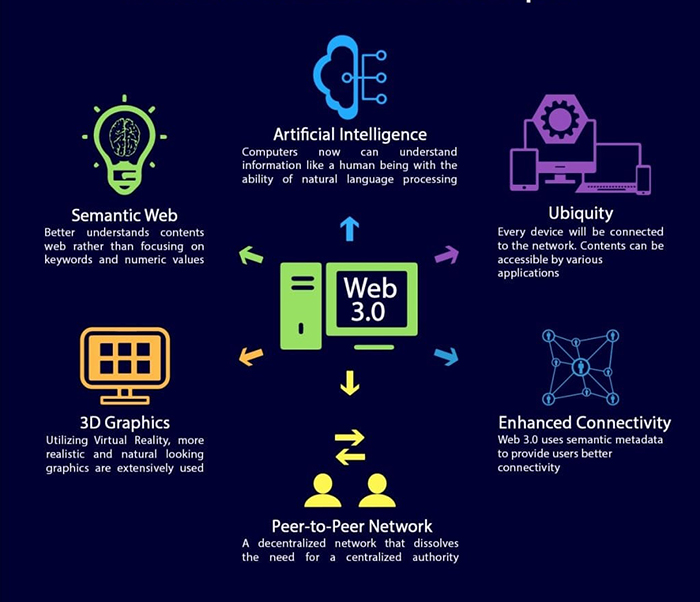 SEMANTIC WEB - Tim Berners Lee originally introduced the concept of Semantic Web in 2001 – which was intended to be based on RDF technology. This was his version of Web3 – where the content on the network is tagged with metadata or information regarding its attributes. This metadata helps browsers understand and interpret webpages easily as it gives context to the data contained on those pages by explaining their meaning. In simple terms, it refers to the web of data that allows machines to process data just like humans. That is, a web where machines will talk to machines and help humans derive useful information from it. For example, you would instruct your intelligent agent to look for an appointment with a dermatologist nearby at a certain time. Your agent first understands your request, then contacts other intelligent agents of dermatologists nearby, scheduling an appointment for you with the doctor’s smart agent who then sets up a meeting. It’s just like Siri doing tasks for you but being more intelligent to hold a conversation with other Siri. But today’s idea of Web 3.0 is more than just semantic web. It is about taking this idea to the next level by using AI and blockchain technology. It is about taking this web of data and transforming it into a web of value.