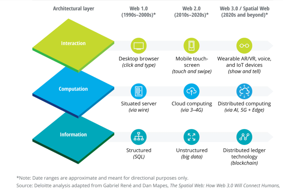 Of note: TRUSTLESS AND PERMISSIONLESS - Web 3.0 is trustless in that no third party is required for transactions between two parties. So, there’s no central authority governing the flow of information between two endpoints; nodes can freely exchange data without requiring supervision or permission from anyone. Permissionless means that anybody with an internet connection can use the network – either to access it or contribute to it – without having to ask for permission from a centralised authority like Facebook or Google.